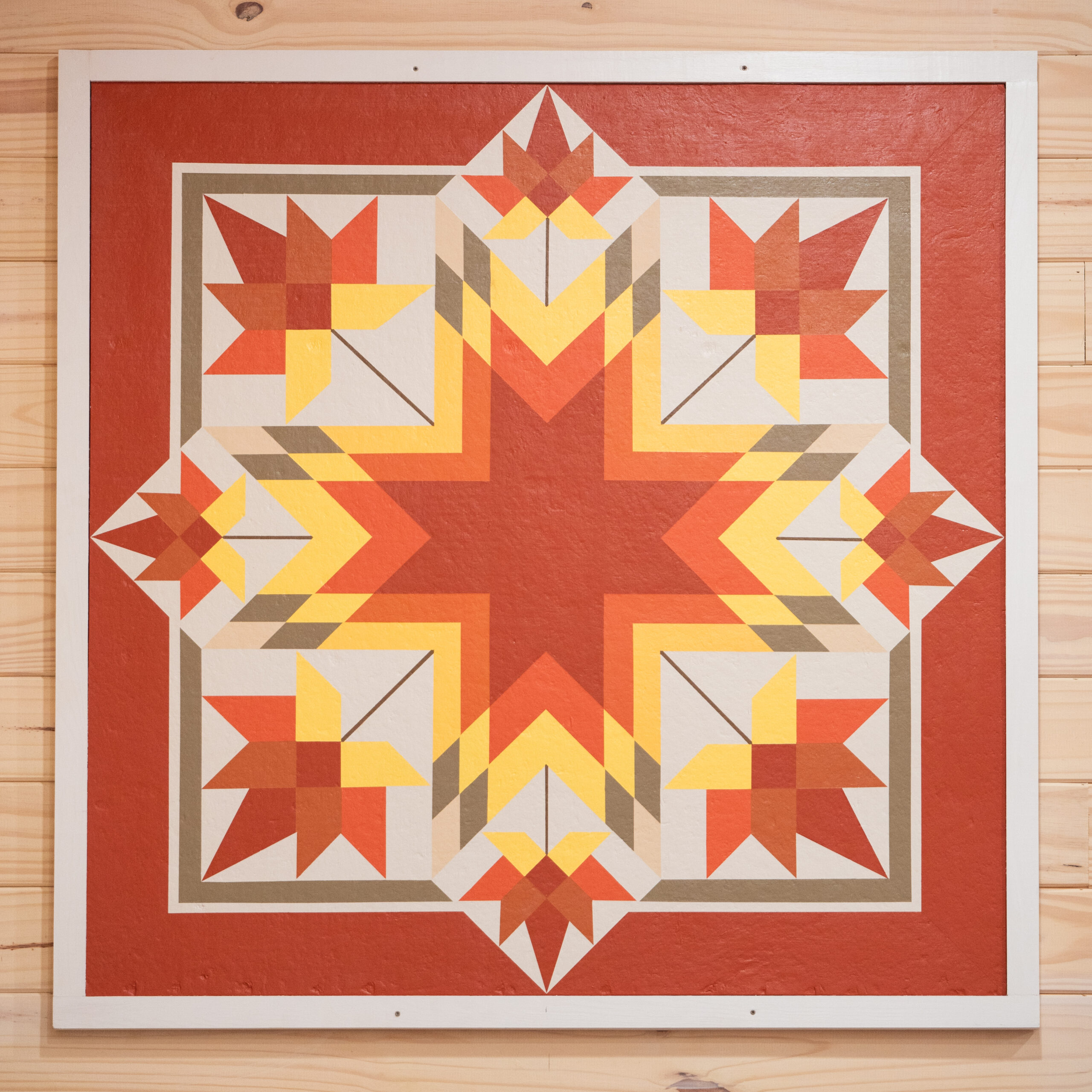 The Kaleidoscope Barn Hex was designed with elements inspired from the Pennsylvania Dutch hexes that represented all the virtues of faith, strength, abundance, purity, divinity, service, love, and health.